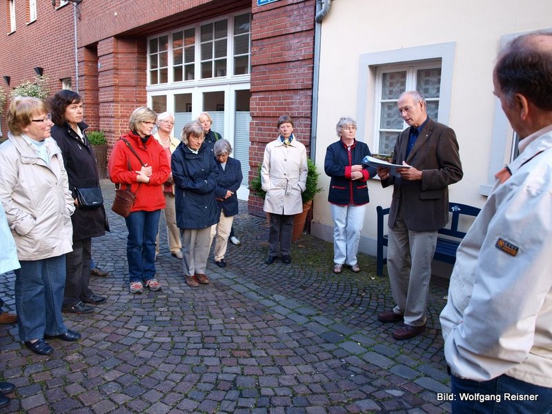Die nächste Station bildete das Geburtshaus von Christoph Bernhard Schlüter, In den Lampen. Dieser hatte als Professor der Philosophie in Münster früh das Talent der Dichterin Anette von Droste Hülshoff erkannt und sie ge-fördert. Einen großen Teil des Spazierganges bildete der Warendorfer Schriftsteller Paul Schallück und sein Roman Engelbert Reinecke, mit dessen Handlungsort Niedernhagen wohl Warendorf gemeint war. Schallücks kritische Äußerungen über Warendorf waren s. Zt. hier auf Ablehnung gestoßen. Den Abschluss fand der Spaziergang schließlich am Geburtshaus von Paul Schallück.